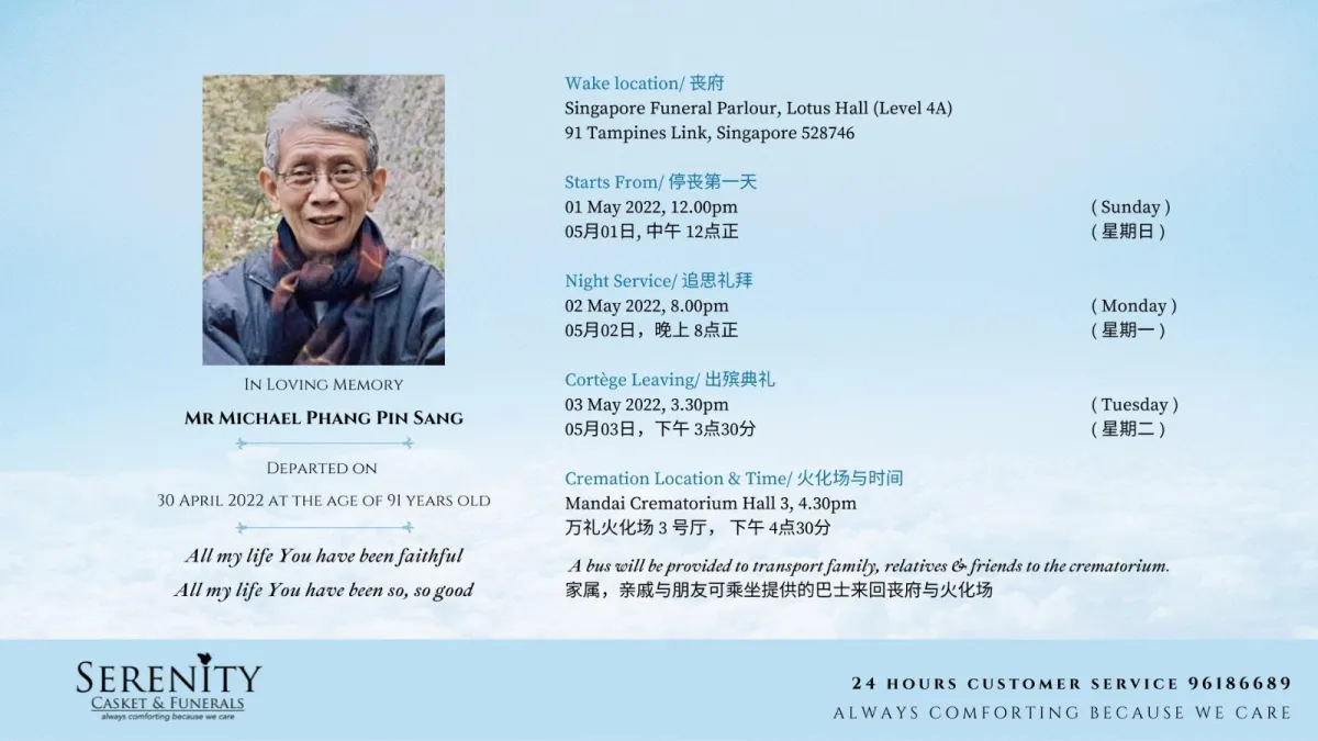 If you like to pen a tribute or share a memory / photo of Michael Phang, pls